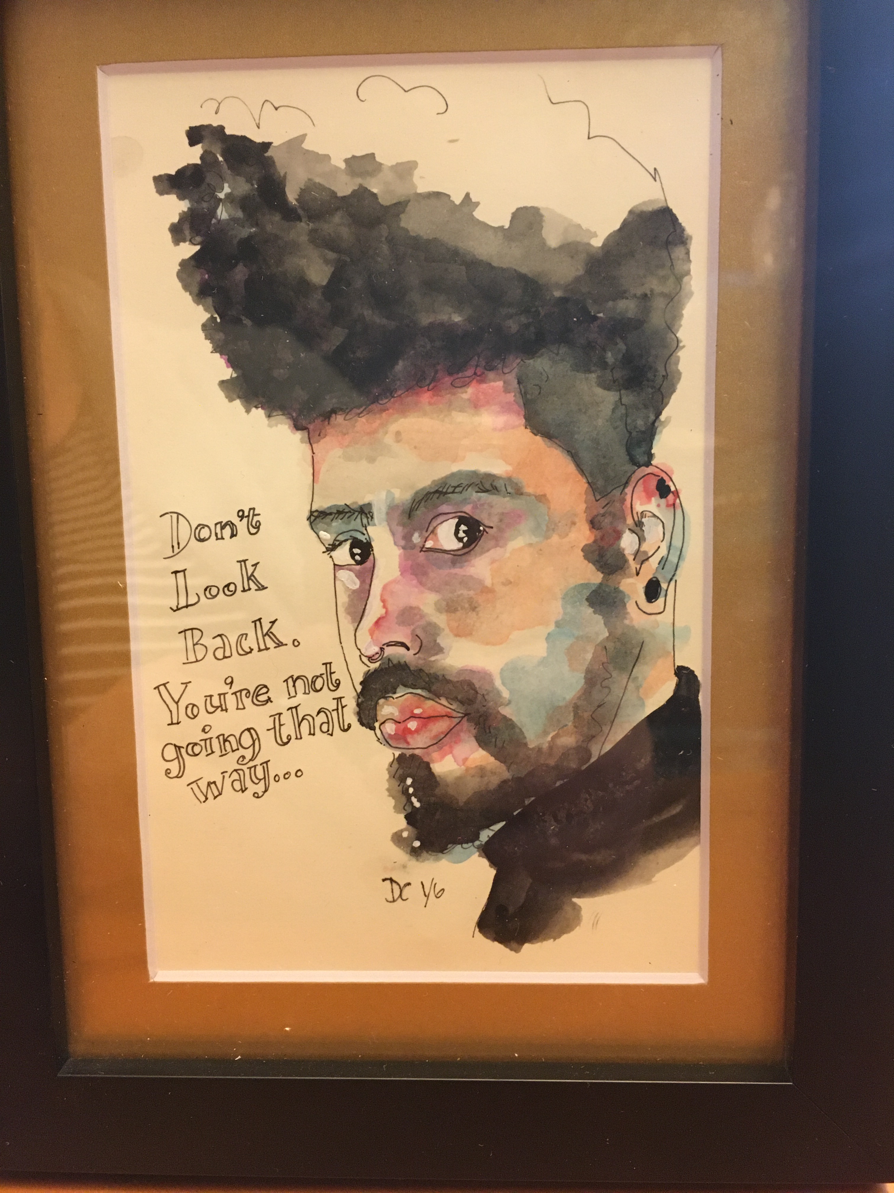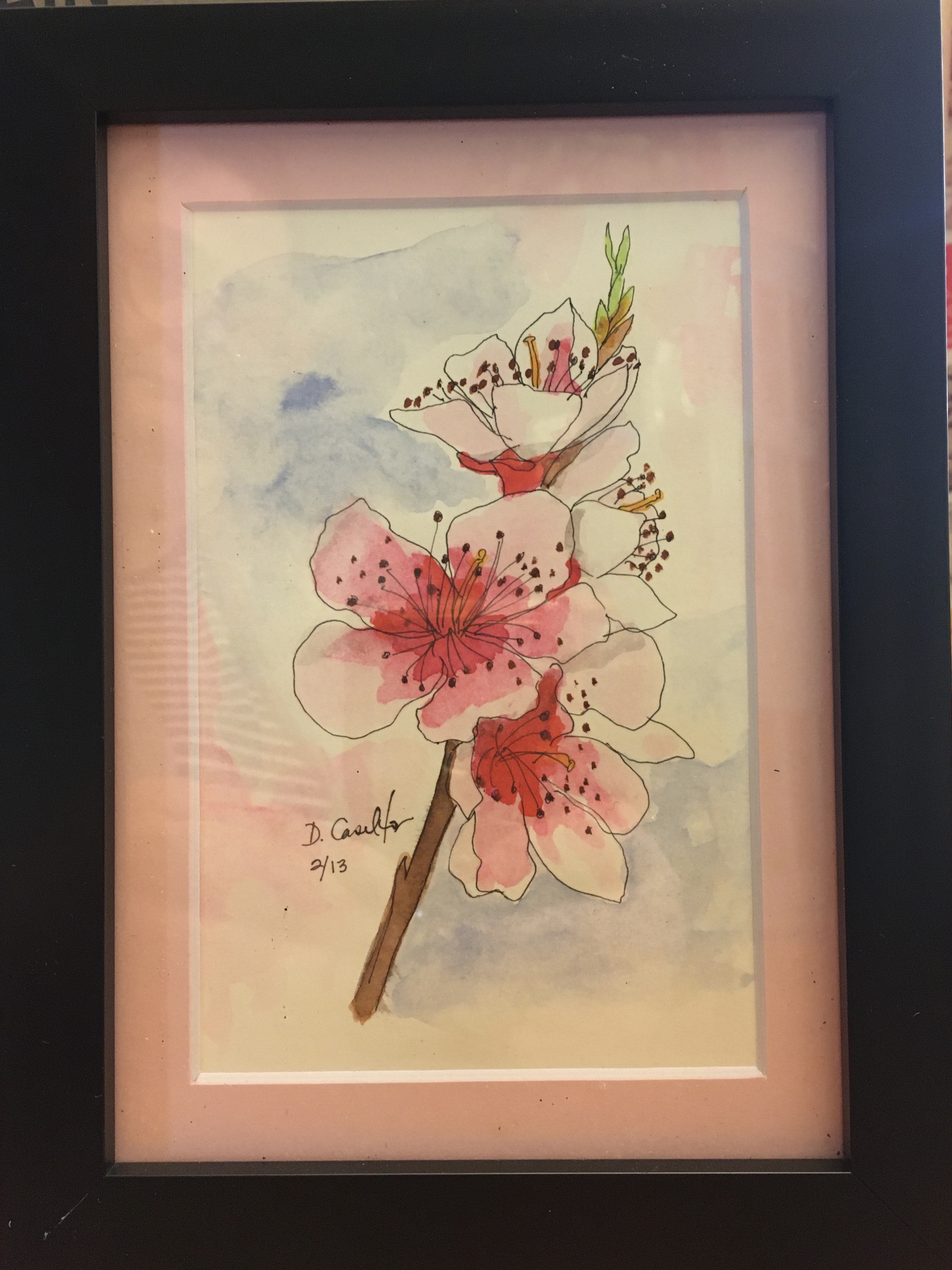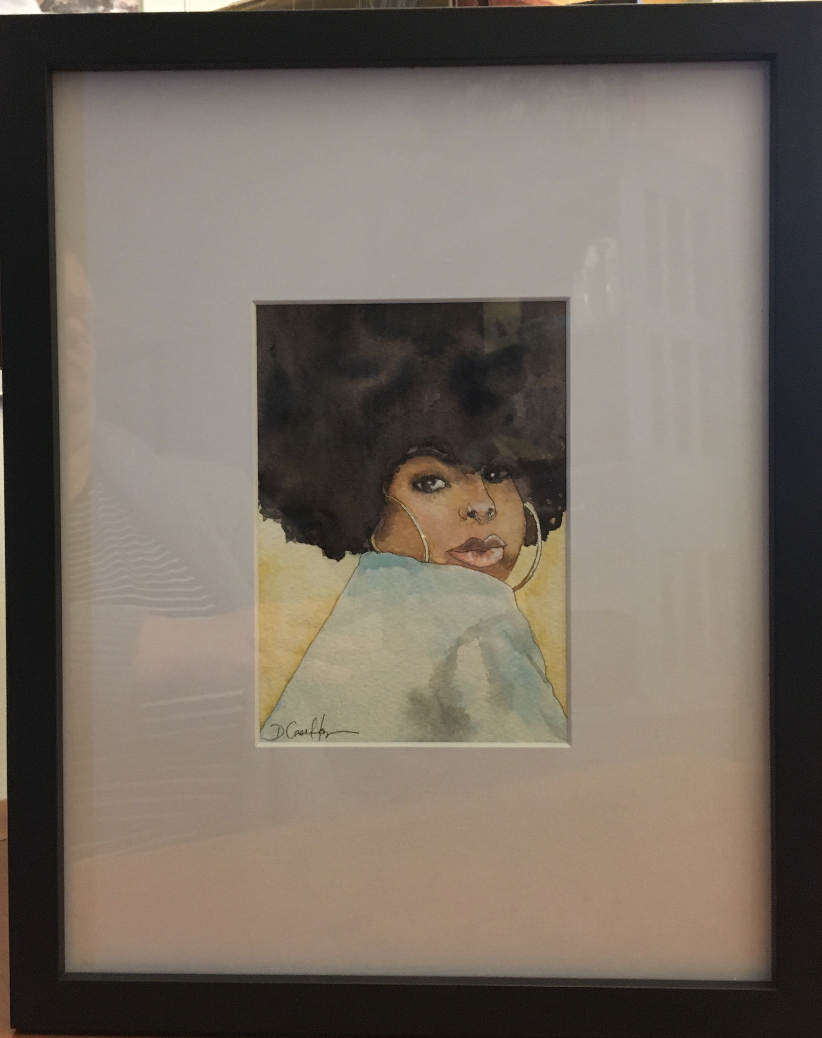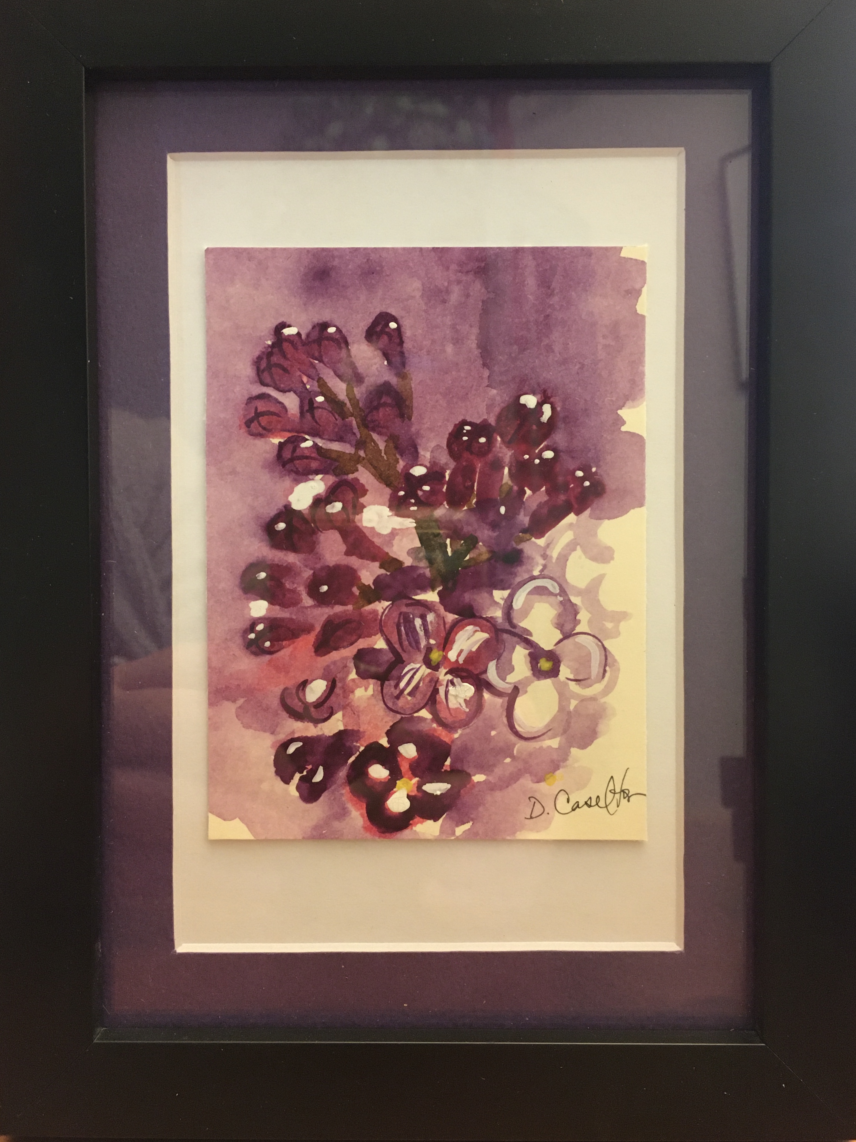 Watercolor, 5×7 with white matting and 11×17 black frame