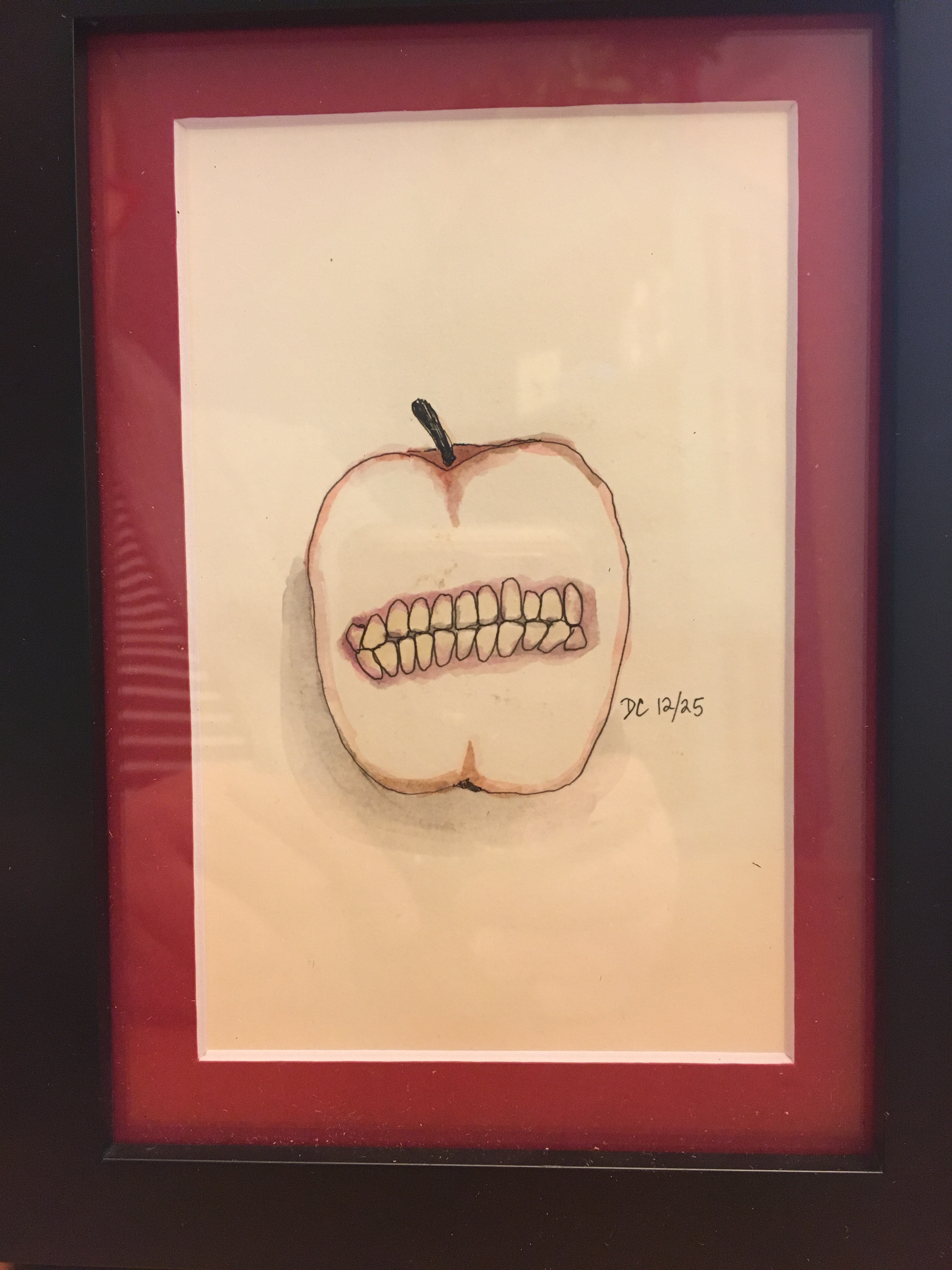 Watercolor, 5×7 with white matting, 11×17 black frame