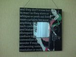 No sooner did I hang this piece at SCRAP that it sold to a couple that are writing a book about creative artists using reused materials.